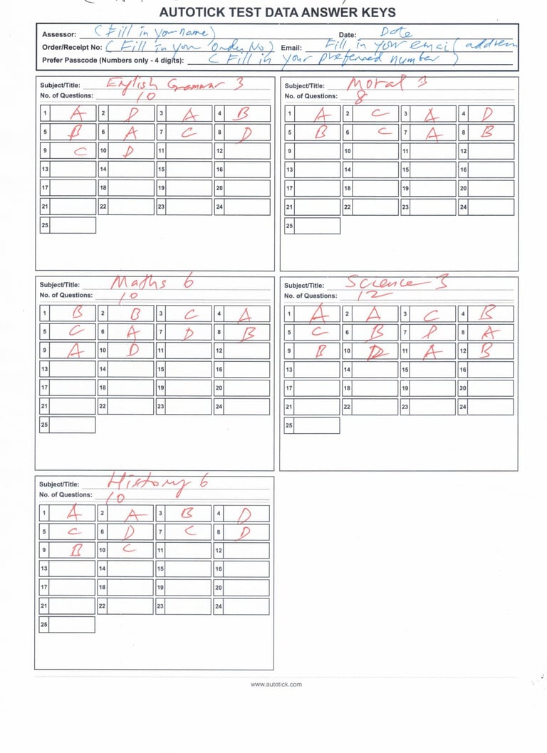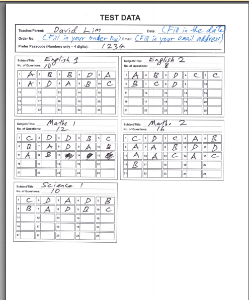 After placing your order, please go to the “Blank Test Data Form” page to download a blank Test Data Answer Key Form.